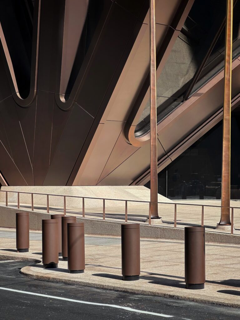 The lateral system for 270 Park Avenue consists of the ground floor and walls below; the Tabletop; the braced tower core; five levels of outrigger trusses; and the distinctive diamond-shaped macro-braces on the east and west facades. Working together, these elements carry the horizontal shears and moments from the superstructure to the foundation. An ingenious system of U-shaped, post-tensioned anchors dip to the bottom of the caisson caps to engage bedrock.